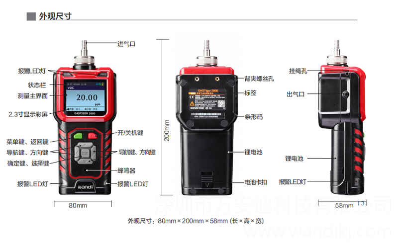 三、萬安迪手持式voc氣體濃度檢測儀: