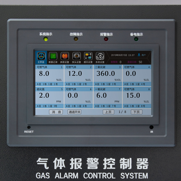 氣體報警控制器連接氣體探測器可持續(xù)監(jiān)測環(huán)境中的有毒有害氣體,根據(jù)接收到的輸入信號顯示被測氣體的濃度,并可通過Rs485數(shù)字信號與上位機通訊??刂破骺稍O(shè)定二級報警值,當(dāng)監(jiān)測到被測氣體濃度超標(biāo)時根據(jù)不同的報警級別發(fā)出聲光信號示警。數(shù)據(jù)記錄、報警記錄、系統(tǒng)日志以及報警通道均可通過菜單查詢,并可通過繼電器輸出來控制外部設(shè)備,如排風(fēng)系統(tǒng)或其它外部設(shè)備。